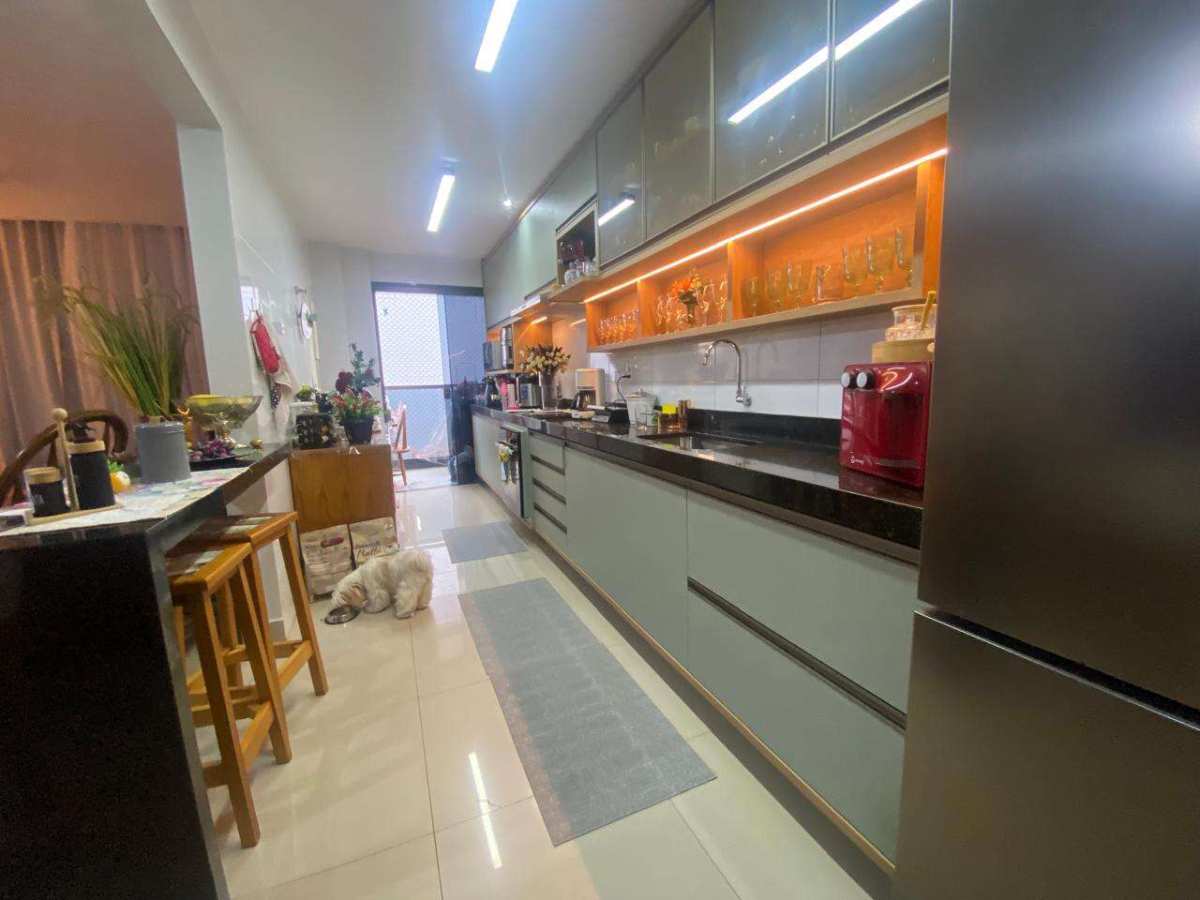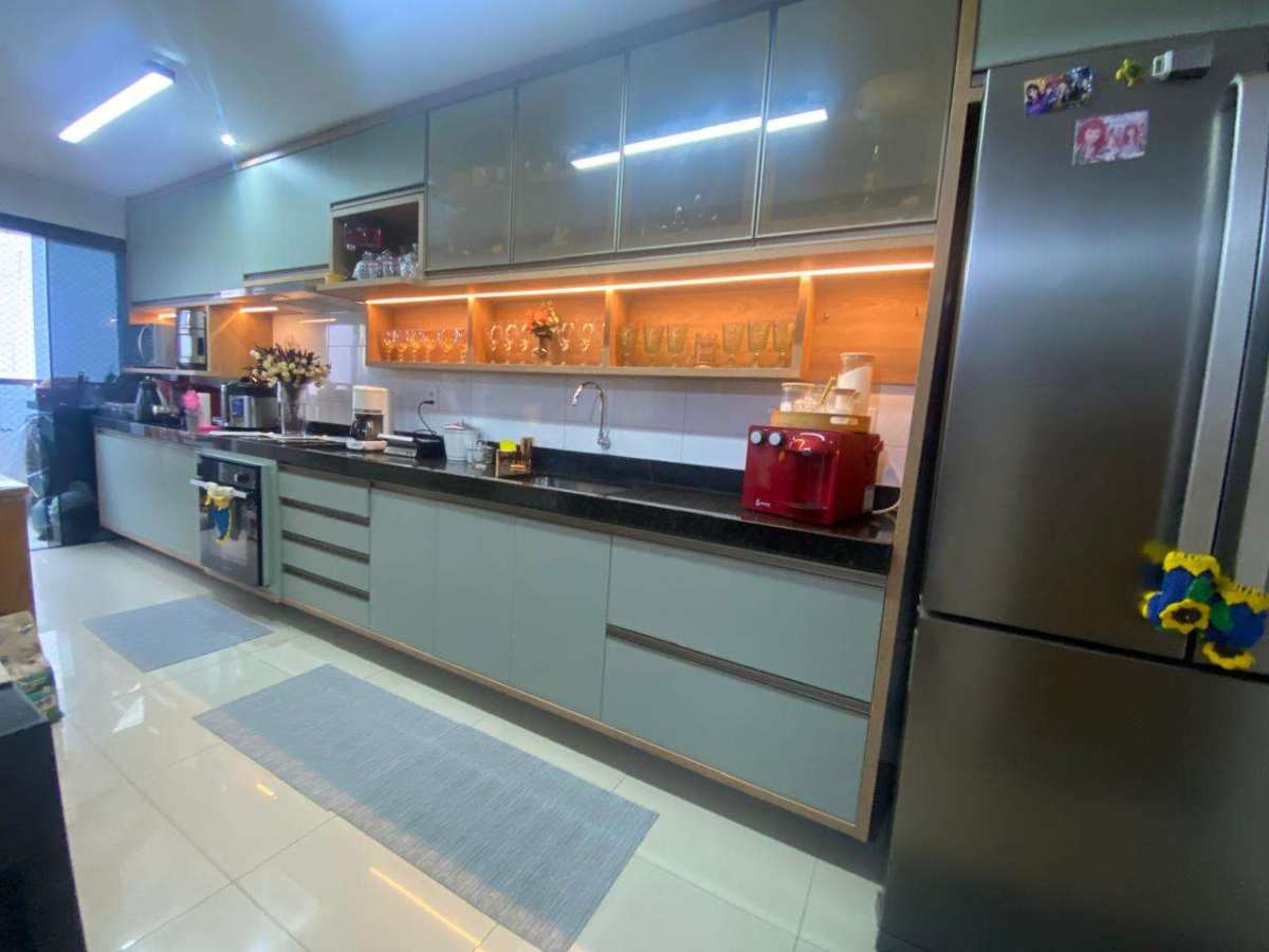 A cozinha é funcional e elegante, também com planejados, oferecendo praticidade no dia a dia. O imóvel dispõe ainda de 2 vagas de garagem cobertas, garantindo mais comodidade e segurança.